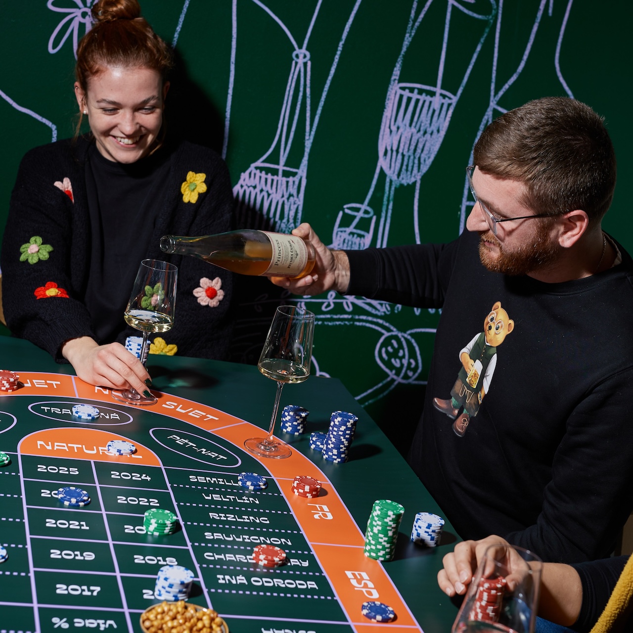 Slepá degustácia, kde etikety mlčia a rozhoduje tvoja intuícia. Tipuješ odrody, ročníky aj pôvod vín. Každý dúšok = malé napätie a každý tip = risk. Na konci vyhráva ten, kto má najlepší nos, alebo najviac šťastia.